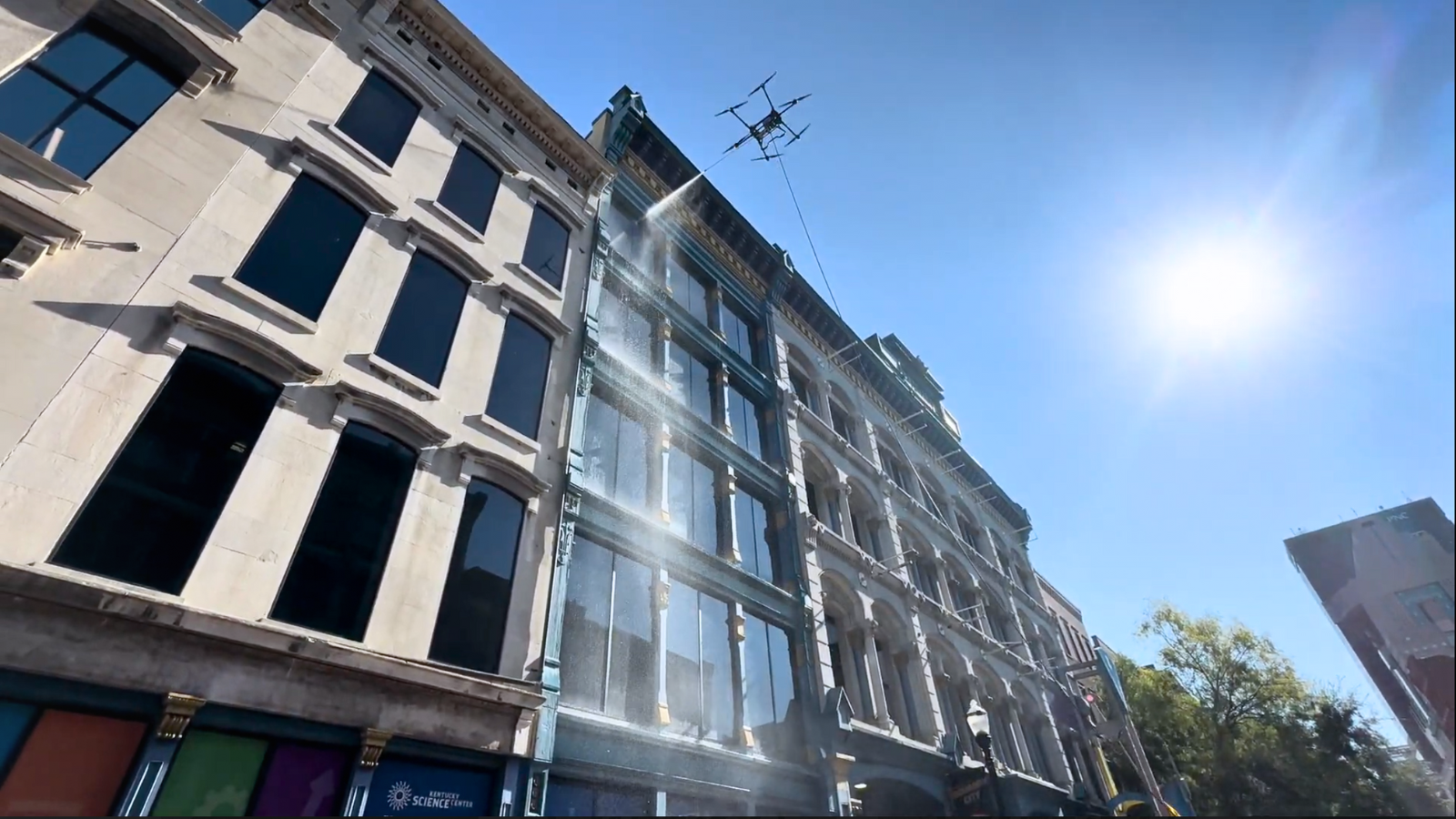 It’s faster, safer, and less disruptive. Drones eliminate lifts, reduce labor time, and minimize the impact on parking lots, entrances, and daily operations.